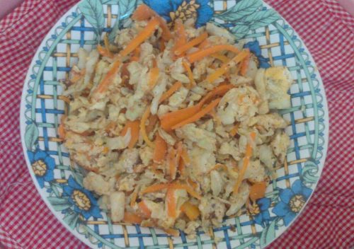 Bawang putih digecek, lalu ditumis/digongso. Masukkan potongan wortel, kubis, atau apa saja. Tambahkan penyedap rasa jika diperlukan (sesuai selera) dan merica. Kalau mau…