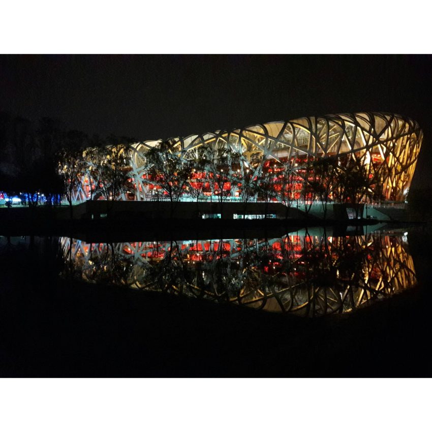 Semalam kami jalan-jalan ke Bird’s Nest, stadion tempat penyelenggaraan Olimpiade Beijing 2008. Kalau lihat di peta sepertinya memang tidak terlalu jauh dari hotel kami, tapi akhirnya jadi jauh karena kami salah ambil jalan. Ketika sudah bisa masuk ke dalam kompleks stadion, kami berfoto di sana-sini. Setelah capek dan pengen balik ke hotel, kami bingung nyari pintu keluar. Sampai nanya beberapa kali ke petugas keamanan